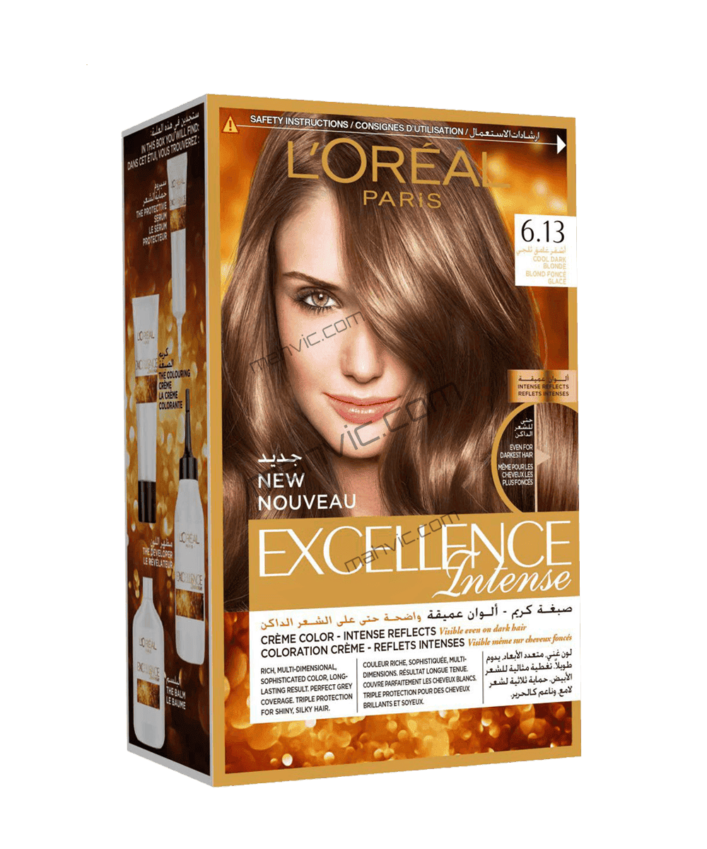 Loreal Excellence Intense No 6.13 provides salon-like caramel color with triple care protection and shine.